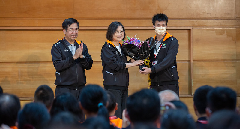 總統也對籌辦、參與本項賽事的所有單位表達感謝,因為有他們的付出,才能讓選手展現平時訓練的成果。她也請大家在賽事期間,為選手及教練做好各項支援和服務。
