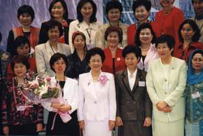 副總統並呼籲僱用女性員工的企業或專事生產女性用品的廠商踴躍捐輸,讓台灣婦女團體全國聯合會持續運作,為婦女爭取最大的權益。