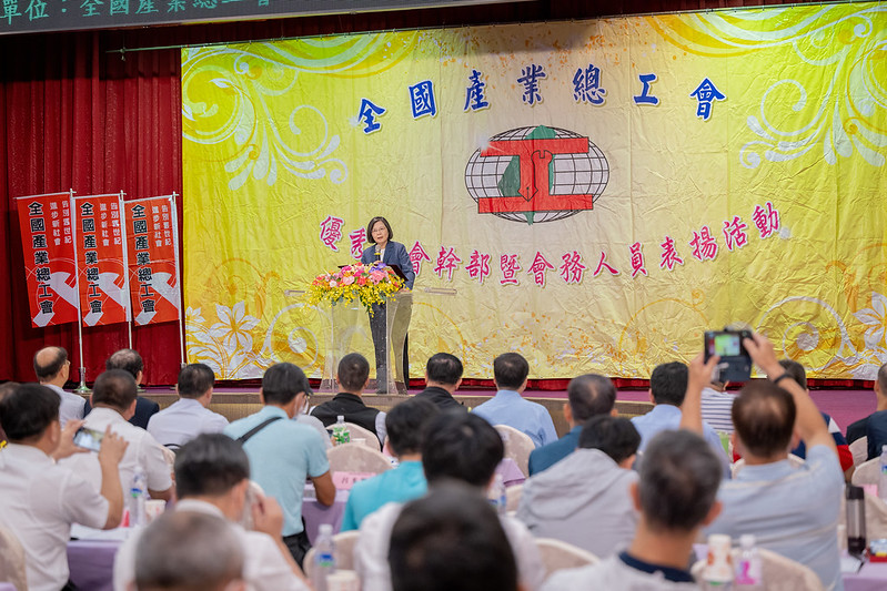 總統強調,未來,政府會繼續推動各項政策,提升勞工朋友的權益。她也再次感謝全產總以及所有工會先進的付出,並祝福今天大會圓滿順利。