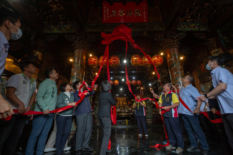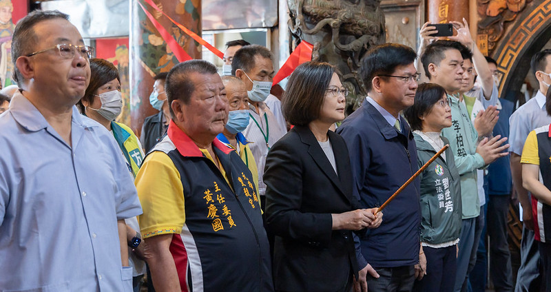 稍早,總統也在總統府秘書長林佳龍、副秘書長張惇涵、立法委員劉世芳等人陪同下,前往左營元帝廟參香,祈求玄天上帝庇佑臺灣風調雨順,國泰民安,並揭贈匾額「敷佑黎庶」。