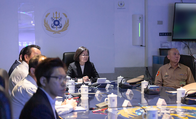 總統致詞時表示,下週四開始就是端午連假,她今天來到艦指部,要代表國人感謝所有弟兄姊妹的付出。前段時間,因為中國軍演,經常有緊急出港應處的需求,要時時保持警戒,「大家都辛苦了」。