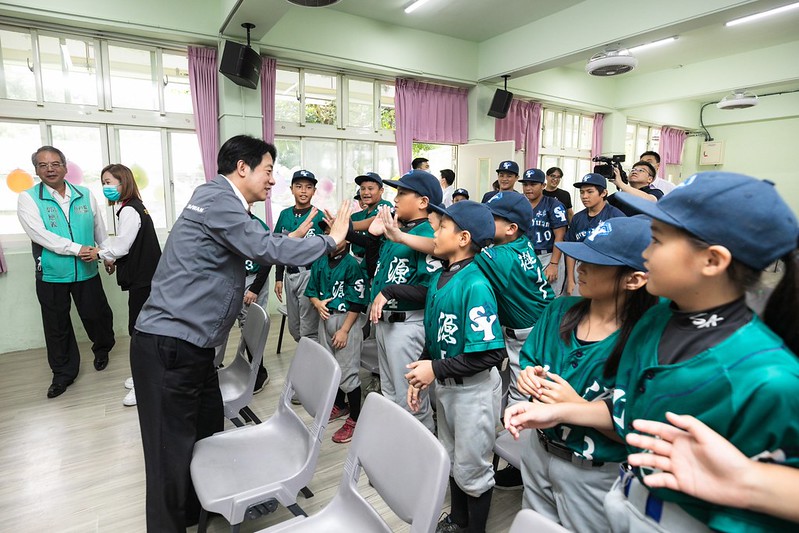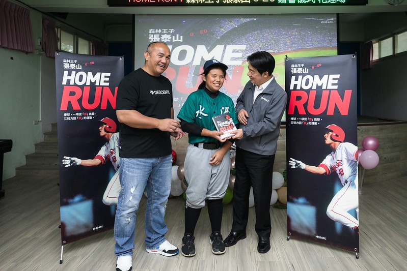 賴清德副總統今(17)日先後前往臺東縣卑南國中及花蓮縣秀林鄉水源國小出席「《HOME RUN:森林王子張泰山》贈書活動」,與前職棒球星張泰山一同贈書予卑南國中、南王國小及水源國小棒球隊成員,期勉小球員們懷抱感恩的心,正面看待挫折、失敗、困難的可貴之處,並勇敢接受挑戰,謙虛面對結果。