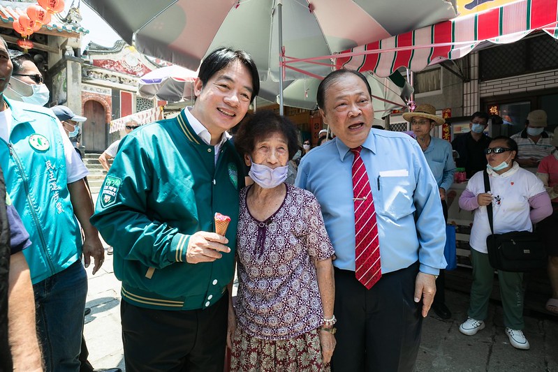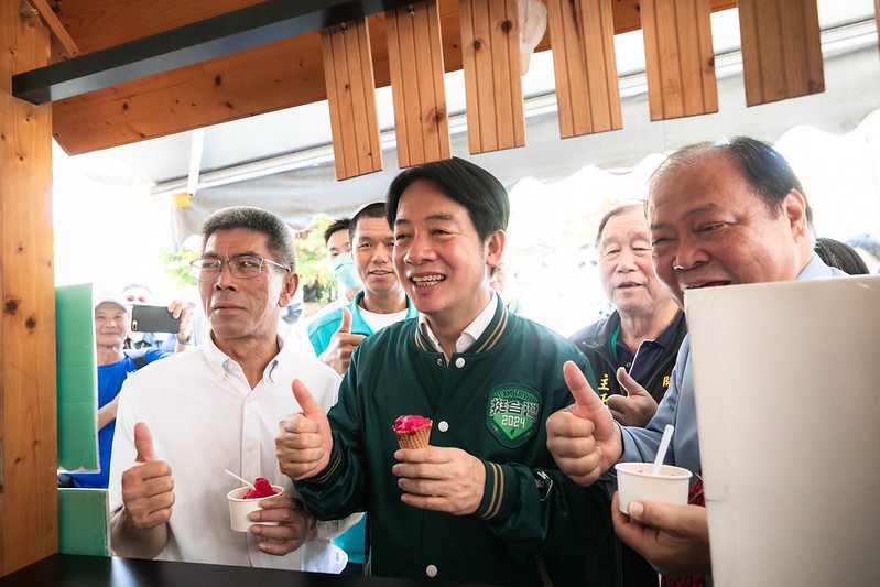 接著,副總統至大天后宮廟旁品嚐冰品—仙人掌冰淇淋,並步行至「花菜干花枝丸專賣店」享用花枝丸、花枝鑲油條、月亮蝦餅、小卷米粉、鮖鮔肉粽、大蛤粽等澎湖在地特色美食,沿途也與民眾親切互動、合影,受到熱情歡迎,氣氛溫馨熱絡。