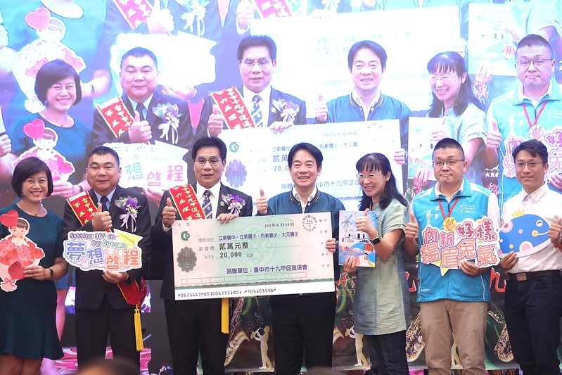 隨後,副總統擔任監交人,見證該協會理事長印信交接典禮,也見證該協會頒贈立新國中、立新國小、內新國小、大元國小等四所學校獎助學金。