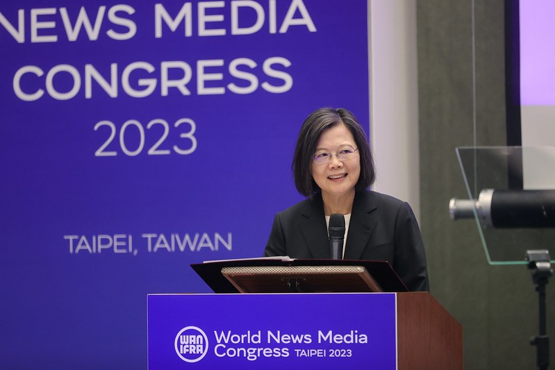蔡英文總統今(28)日上午出席「2023世界新聞媒體年會開幕式」時指出,近年來,許多國際媒體專業人士在臺灣駐點,印證了臺灣捍衛媒體自由及言論自由的努力,也向世界展現臺灣極為重視此重要的民主支柱。然而,錯假訊息攻勢已成為民主國家所面臨最困難的挑戰之一,而臺灣已發展出反制錯假訊息的方式,並持續與國際友人分享相關經驗。她認為,政府和公民社會力量就是幫助每個人建立識別真實、虛假或誤導性訊息的能力,同時也需要可信的第三方機構進行事實查核,這需要全體社會努力及共同合作,這是我們在民主國家保護言論自由的方式,而媒體應可在此扮演重要角色。
