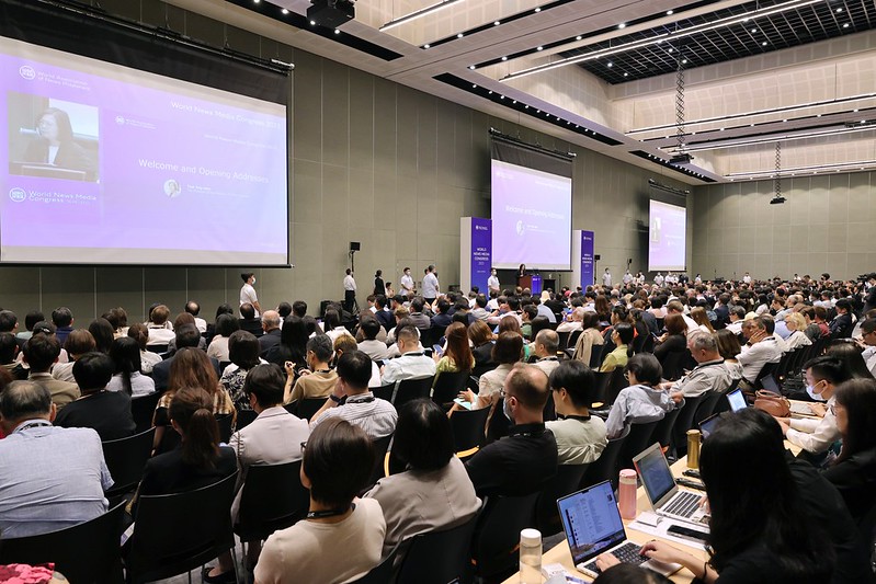 今天很開心和大家共聚一堂,以及看到超過600位來自全球80多國的媒體專業人士及領袖,因新冠肺炎疫情而延宕兩年後訪臺,也很高興世界新聞出版協會(WAN-IFRA)在2013年之後,首度重返亞洲,擇定在臺灣舉辦世界新聞媒體年會。