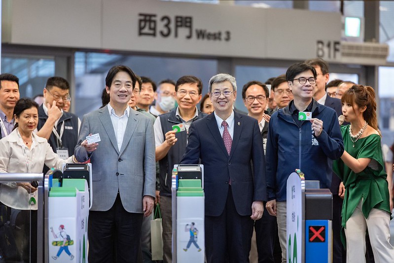 隨後,副總統與現場貴賓一同進行啟動儀式,並步行至閘門口,使用TPASS進站,沿途也向現場民眾揮手致意。
