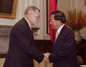 卓懋祺夫婦一行,下午是由國策顧問高俊明陪同,前來總統府晉見總統。總統府副秘書長簡又新也在座。