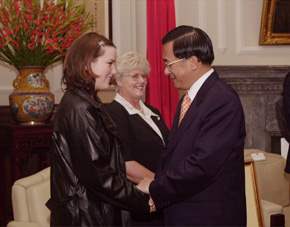 陳總統水扁先生今天下午在總統府接見前南非駐台武官卓懋祺先生(McGill Alexander)以及他的夫人安妮女士(Anne Alexander)與女兒克麗絲汀小姐(Christine Alexander),並代表中華民國政府與人民歡迎他們再次回到台灣。
