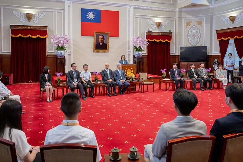 蔡英文總統今(6)日上午接見「我國參加2023年各國國際科學展覽會代表團」,肯定獲獎同學們讓世界看見臺灣學生紮實的科研實力。她相信同學們透過這些參賽經驗,累積更堅強的實力。也期許大家,保持對世界的好奇心與對研究的熱情,未來持續發揮自己專長,替臺灣社會注入新的研究能量。