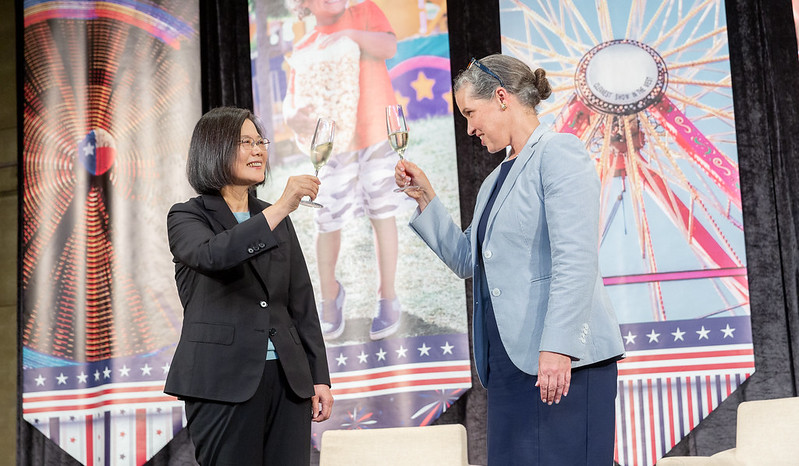 蔡英文總統今(6)日晚間偕同賴清德副總統出席「美國獨立紀念日酒會」,感謝美國對臺灣的支持與友誼並表達祝賀之意。她表示,在臺灣政治史的每個關鍵時刻,美國總是協助及鼓勵臺灣。在過去幾年,臺美共同完成許多工作,且成果斐然,她期盼臺美夥伴關係能持續成長。