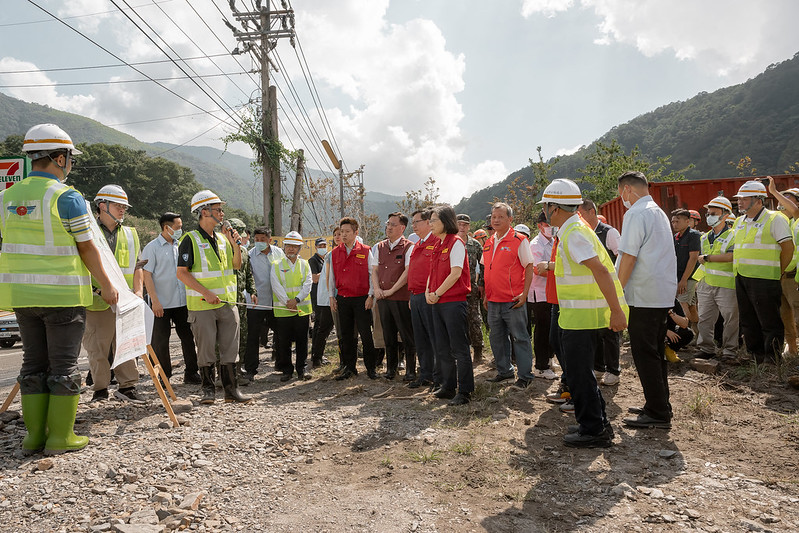 總統進ㄧ步說明,為了因應落石情況,每天清晨公路總局都會派員巡查路況,如果有道路受阻情況,會盡快排除;針對道路出現裂縫,也會盡速回填。她要感謝公路總局第二區養護工程處,因應颱風來襲,預先將機具進駐,並在災情發生後,漏夜搶修道路和巡查有無受困民眾。