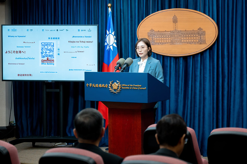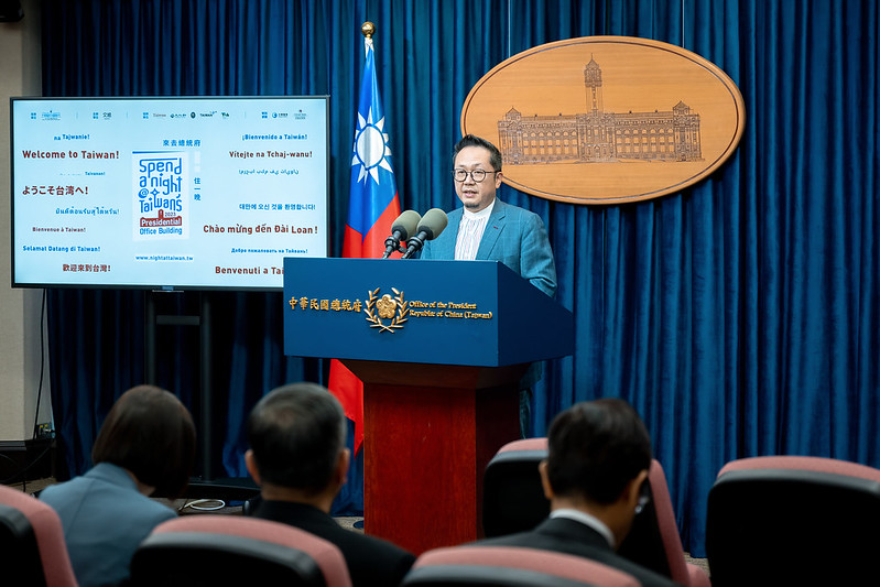 總統府發言人林聿禪引言時表示,2019年,總統府與文化總會共同舉辦全球首創「來去總統府住一晚」體驗活動,吸引全世界的KOL報名,在夜宿總統府和走訪臺灣的過程中,這些國際友人體會到,臺灣不只是友善、自由,而且充滿豐富的多元文化,並透過社群平台,把臺灣的美好經驗分享給全世界。