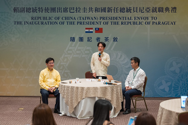 賴清德副總統特使團出席巴拉圭共和國新任總統貝尼亞(Santiago Peña Palacios)就職典禮,於當地時間15日下午(臺北時間16日凌晨)與隨團記者茶敘,分享此次出訪的心得與感想,以及特使團此行完成總統交付任務,與巴拉圭深化邦誼、開拓合作及與各國領袖互動交流等成果。