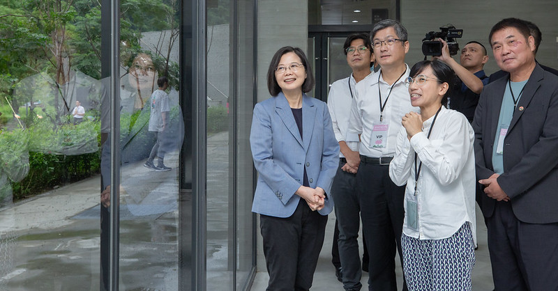 總統指出,展區最多的就是在苗栗,6個鄉鎮共8處地點,都有藝術品可以觀賞。我們現在所在的「客家文學花園」,也是展區之一,更是首次對外開放。她剛剛一來到這裡,就覺得周遭的景觀很漂亮、很遼闊,非常舒服。這個園區是以客家文學為背景,並以「荒野花園」的概念來打造,保留在地原始的自然景致。