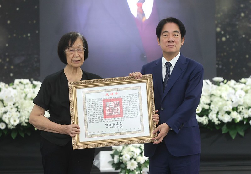 賴清德副總統今(20)日上午前往臺南出席「國立成功大學前校長馬哲儒告別式」,並代表總統頒贈褒揚令,由馬前校長夫人楊友偉女士代表接受,以表彰馬前校長對奠定成功大學發展基礎及對國家社會的卓越貢獻。