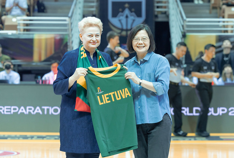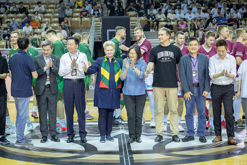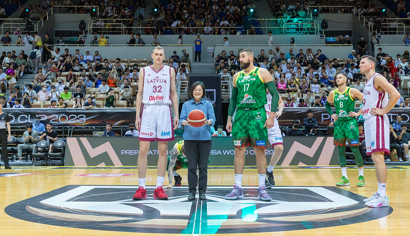 蔡英文總統今(22)日晚間前往新莊體育館出席「FIBA 2023世界盃籃球賽熱身賽」,並與立陶宛前總統葛寶思凱德(Dalia Grybauskaitė)一同觀賽、為選手加油,以行動支持在臺舉辦的國際級籃球賽事。