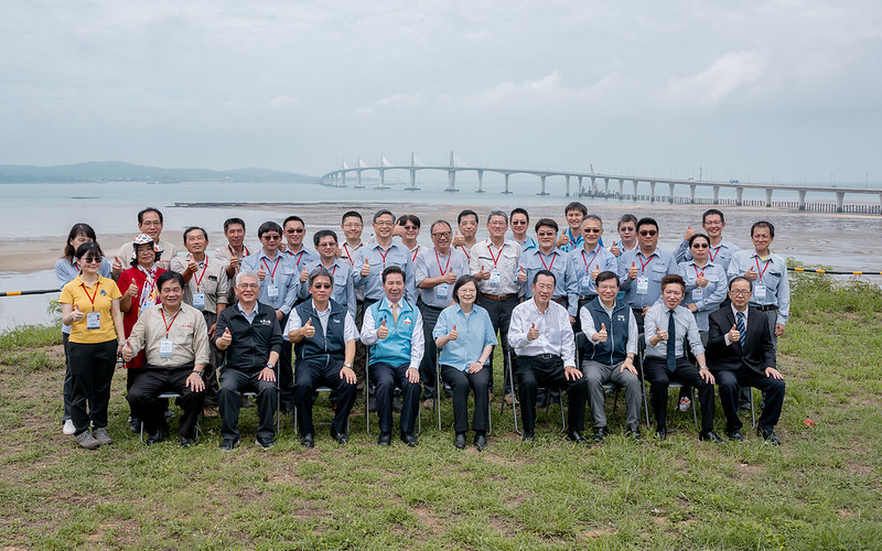總統指出,金門大橋是國內第一座具有高風險、高技術的「長跨距」海上特殊公路橋梁,歷經12年的工程期,終於在去年10月順利完工、通車。她要特別感謝交通部,以及所有單位的積極配合,讓施工團隊能夠克服萬難、達成目標。