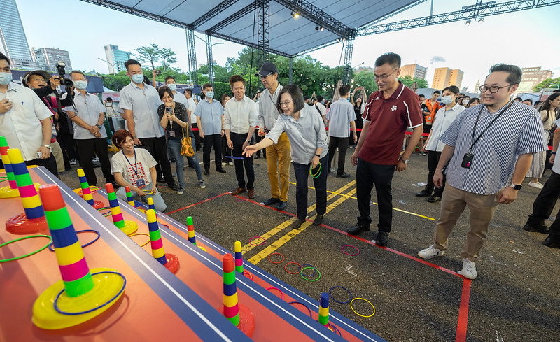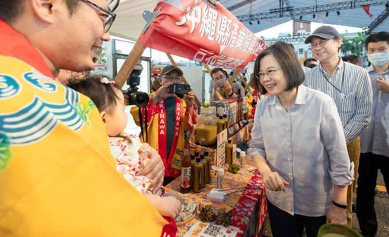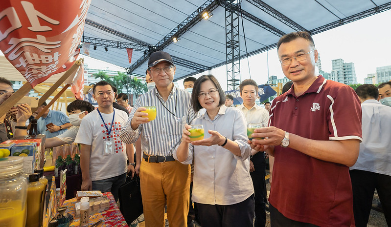 蔡英文總統今(26)日晚間出席在凱達格蘭大道舉辦之「2023台日水果夏祭」,參觀夏季水果、飲品等臺日農特產品攤位。