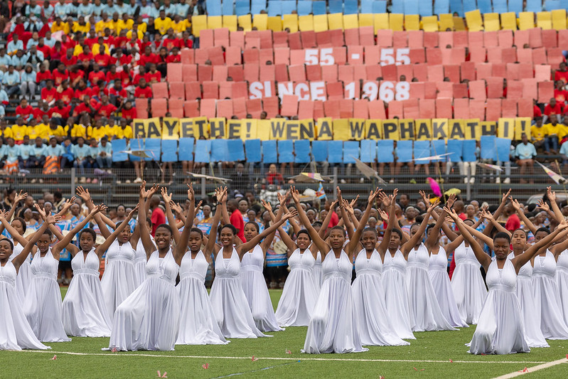 蔡英文總統「邦誼同慶・合作永續之旅」於當地時間6日午間(臺北同日傍晚)前往松壽婁國家體育場(Somhlolo National Stadium),參加史瓦帝尼建國55週年及國王恩史瓦帝三世(King Mswati Ⅲ)55歲生日慶典。