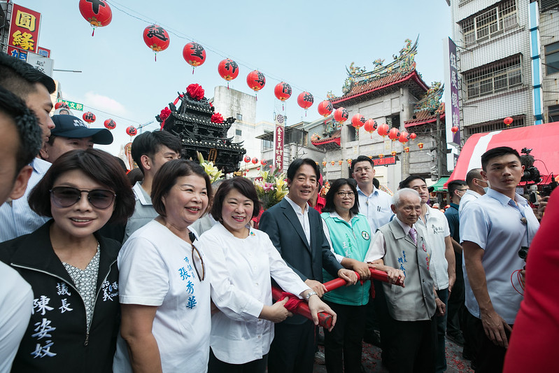 隨後,副總統也與現場民眾一起進行城隍爺起駕及夜巡遶境儀式。