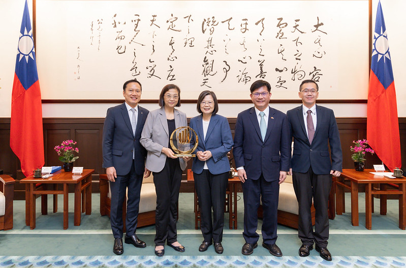 蔡英文總統今(26)日上午接見2023《安永世界企業家大獎》得主暨安永團隊,恭喜環球晶圓徐秀蘭董事長獲頒「安永世界企業家大獎」。