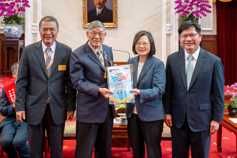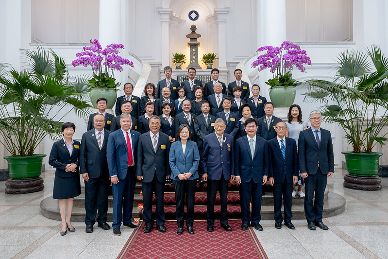 訪賓一行由國際同濟會台灣總會總會長蕭成益率領,農業部次長陳添壽及內政部次長吳堂安陪同,前來總統府晉見總統,總統府秘書長林佳龍也在座。