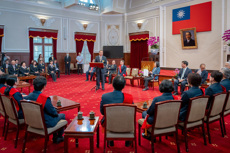 總統致詞時表示,很高興今天能在總統府,跟許多同濟會的好朋友見面,也恭喜今年得獎的十大傑出農業專家。同濟會的夥伴不僅事業成功,也積極參與國內外的各項公益活動,提升臺灣的國際能見度。