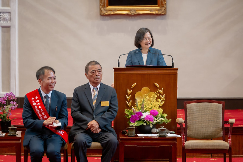 總統也感謝同濟會,長期舉辦如此有意義的表揚活動,也期待各位得獎人未來與政府一起努力,持續精進我們的農業技術,讓臺灣的農產品行銷到全世界。