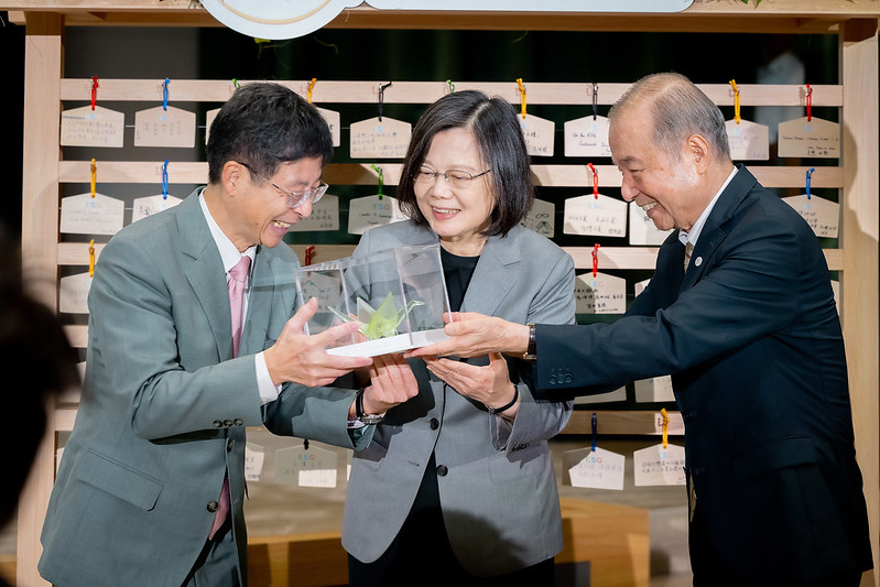 總統表示,未來,政府會與企業界繼續加強合作,讓臺灣的產業邁向智慧化、低碳化,她也期盼在場的企業先進能持續發揮影響力,從自家做起,帶動上下游減排的工作,與政府一起落實淨零轉型的目標。