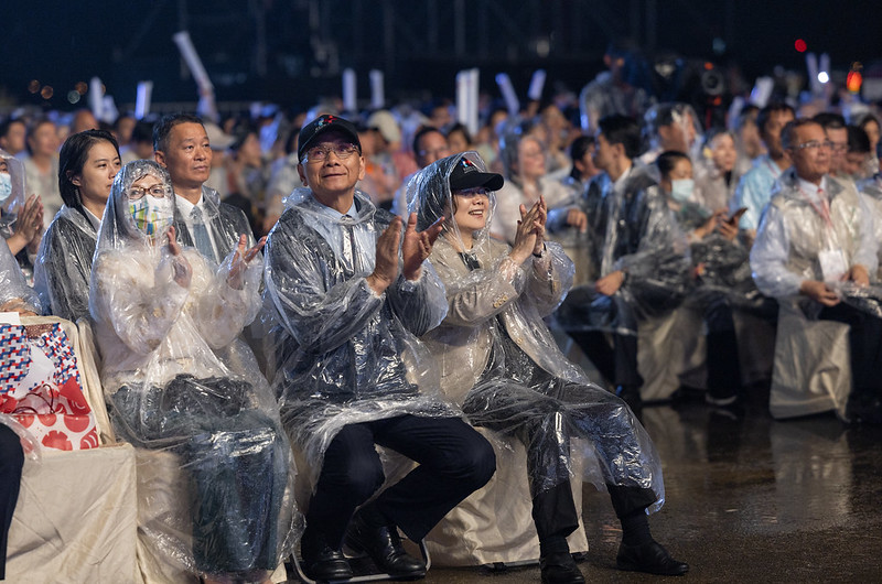 最後,總統感謝所有籌辦這場晚會的夥伴,「大家辛苦了」。她剛才在後台看到稍後將帶來精彩表演的年輕朋友,站在雨中等候上場表演,請大家給予他們掌聲。總統也祝福在現場以及收看直播的所有國人有個美好的夜晚。