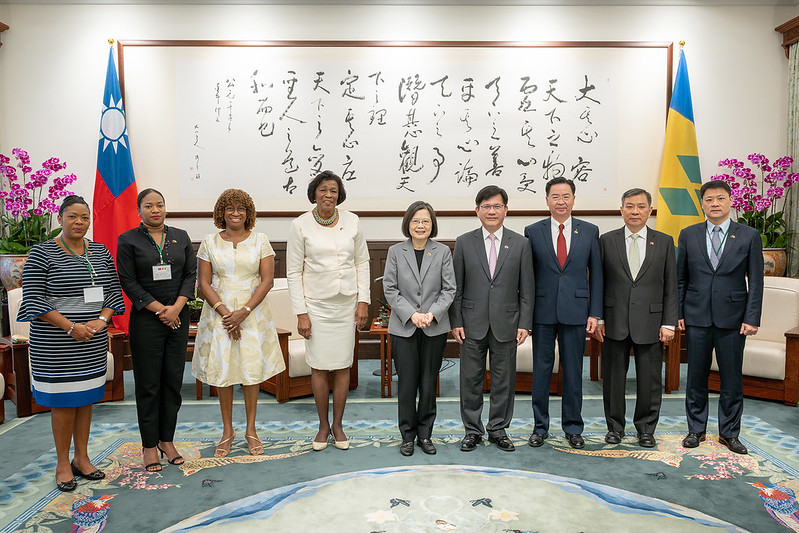 訪賓包括聖文森及格瑞那丁大使柏安卓(Andrea Bowman)等,由外交部長吳釗燮陪同,前來總統府晉見總統,總統府秘書長林佳龍也在座。