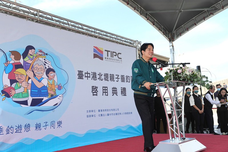 賴清德副總統今(14)日上午出席「臺中港北堤親子垂釣區啟用典禮」,感謝臺灣港務公司等各界的努力,讓國人可以來到該區親近大自然,享受釣魚的樂趣。並指出,政府的責任,除了發展經濟,推動自由民主,深化人權,讓國人有好的休閒設施也非常重要,未來希望和大家一起合作持續推動釣魚文化。