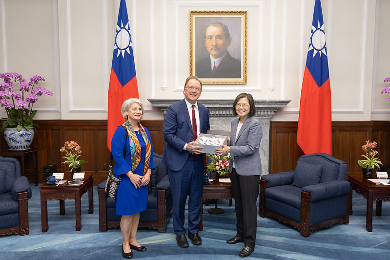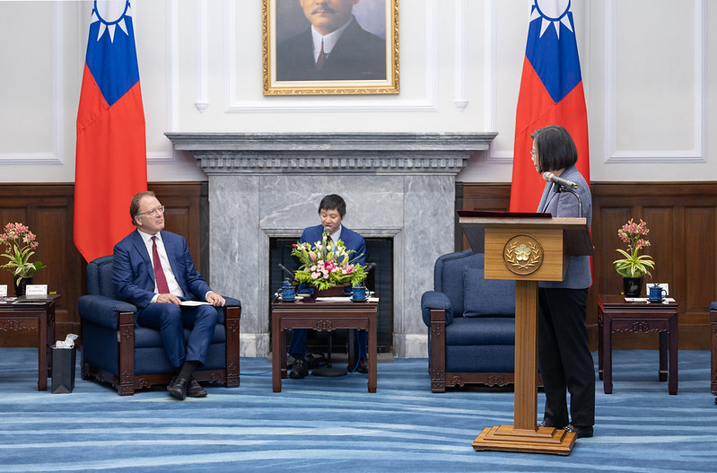 訪團一行由外交部長吳釗燮陪同,前來總統府晉見總統,國家安全會議秘書長顧立雄也在座。