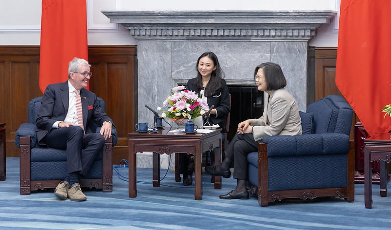 總統指出,紐澤西州是美國生技、通訊科技等重要產業的聚落,更是前進美東市場的重要入口。許多臺商都前往紐澤西投資、拓展據點。我們樂見紐澤西州選擇在臺灣設立亞太經貿辦事處,相信將會讓雙邊的經貿關係持續升溫。