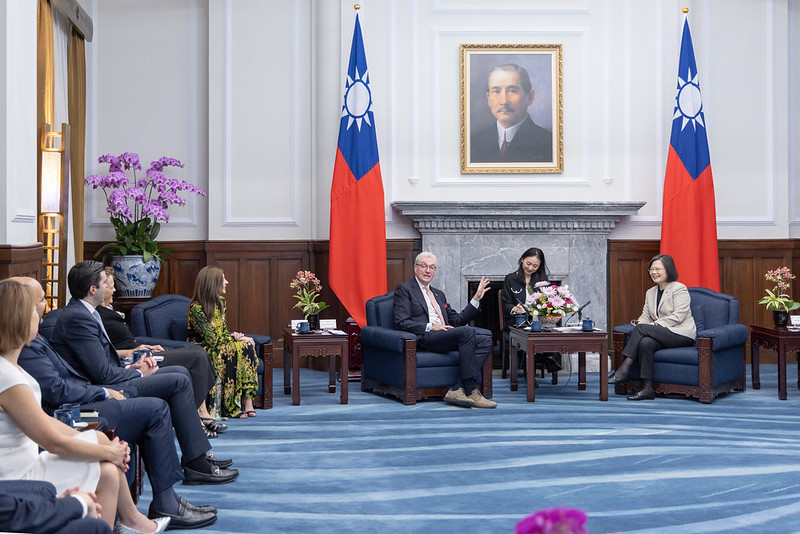 訪賓一行尚包括紐澤西州經發廳長蘇利文(Tim Sullivan)、招商局長馬修(Wesley Mathews)、州眾議員朴廷珠及紐澤西理工學院校長林竹進(Teik Lim),由外交部長吳釗燮陪同,前來總統府晉見總統,總統府秘書長林佳龍、國家安全會議秘書長顧立雄也在座。