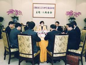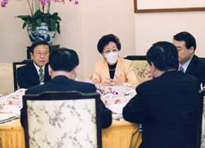 呂副總統秀蓮女士今天上午在總統府主持「因應後SARS時代圓桌論壇」,就主題「人類安全」和與會人員進行討論。
