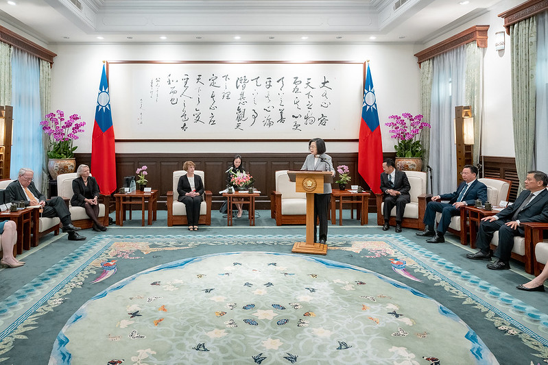 總統提到,最近國際局勢動盪,相信訪團貴賓透過這次來訪,將能對臺灣及整個區域所面臨的挑戰,有更全面的理解。這些年來,「美國外交政策全國委員會」定期針對臺美關係及臺海情勢發表報告。她要感謝大家促成多邊對話,深化臺美關係,並讓區域安全獲得正向發展。