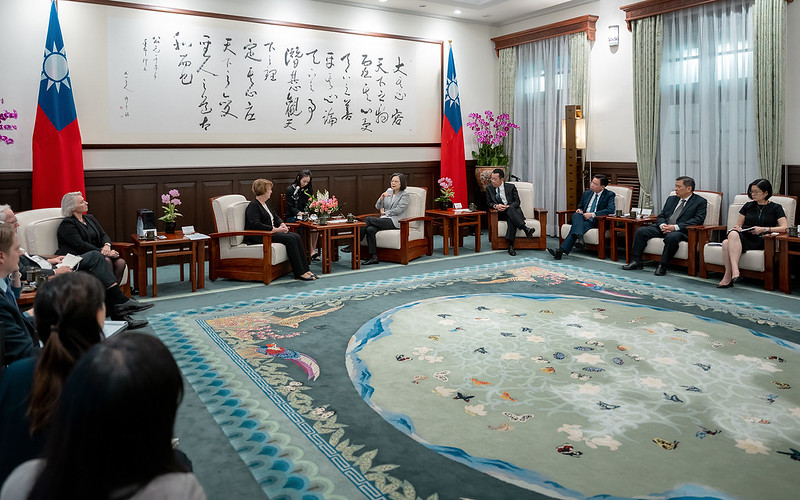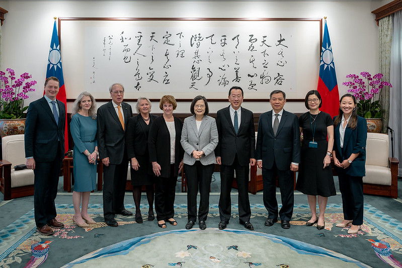 訪賓包括美國外交政策全國委員會會長艾略特、亞太安全論壇主任董雲裳(Susan A. Thornton)、太平洋世紀研究所所長薄瑞光、美國全球戰略諮詢公司資深副會長胡克(Allison Hooker)、布魯金斯研究院桑頓中國研究中心主任何瑞恩、美國外交政策全國委員會亞太安全論壇副主任李瀅等,由外交部長吳釗燮陪同,前來總統府晉見總統,國家安全會議秘書長顧立雄也在座。