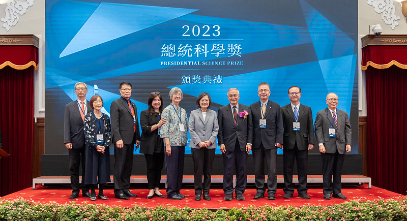 蔡英文總統今(24)日下午出席「『2023年總統科學獎』頒獎典禮」,親頒獎座予「生命科學組」得獎人李文雄院士、「應用科學組」得獎人胡正明院士及「數理科學組」葉永烜院士,肯定他們帶動生物科技、半導體與太空科技領域的發展,對臺灣經濟、社會及產業有重要影響。她表示,臺灣有卓越的科學發展和研發能量,我們要持續掌握優勢,累積更強的實力,讓臺灣成為更創新、更繁榮的國家。