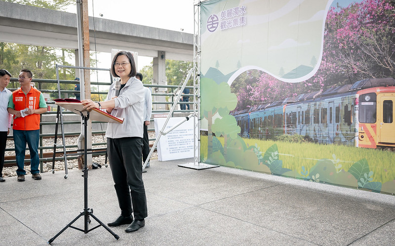 總統指出,濁水站是集集支線唯一有列車交會的車站。未來,田中支線在2029年完工後,從彰化高鐵站到這裡,一車到底只要30分鐘,也讓彰化及南投的民眾在高鐵和臺鐵之間的轉乘更加便利。