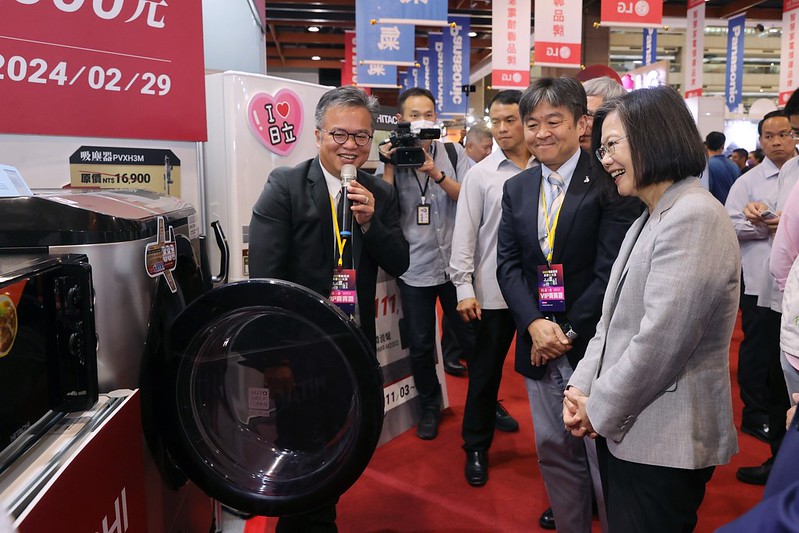 總統致詞時表示,過去幾年,只要有機會她都會來參加電器大展,不只是因為逛家電很療癒,每年還可以看各家廠牌有什麼更新穎、更方便的家電產品。最重要的是,她也有責任來推銷,邀請大家在年末和朋友或自己,一起來逛展、添購新家電。