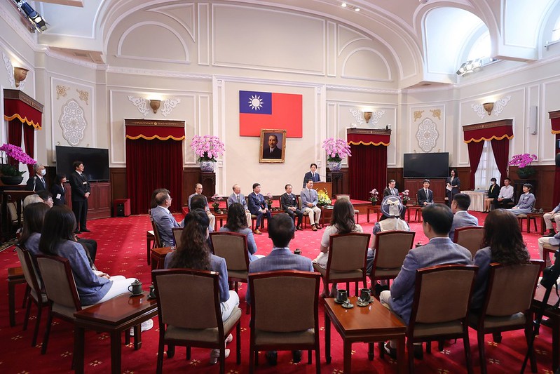 訪賓一行由中華民國洋服同業總會理事長莊光榮率領,經濟部主任秘書楊志清陪同,前來總統府拜會副總統。