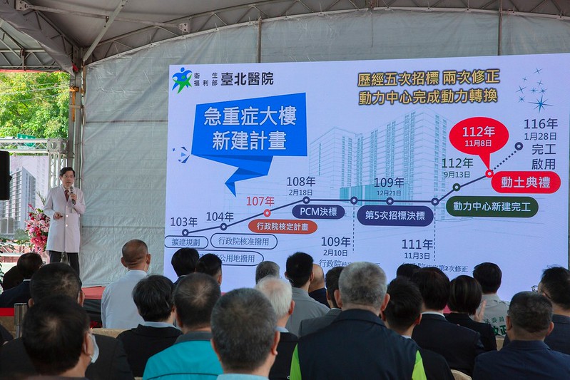 副總統提到,他在擔任行政院長任內,立法委員吳秉叡及蘇巧慧多次談及衛福部臺北醫院對新北市醫療的重要性,尤其該院涵蓋的服務範圍包括新莊、五股及泰山區等,人口有將近60萬人。因此他拍板同意該院興建這棟大樓,期能滿足地方急重症需求,不僅提供鄉親更及時的醫療照護,亦落實健康平權。在歷經蘇貞昌前院長、陳建仁院長一棒接一棒的努力之下,這棟大樓才能在今天動工。