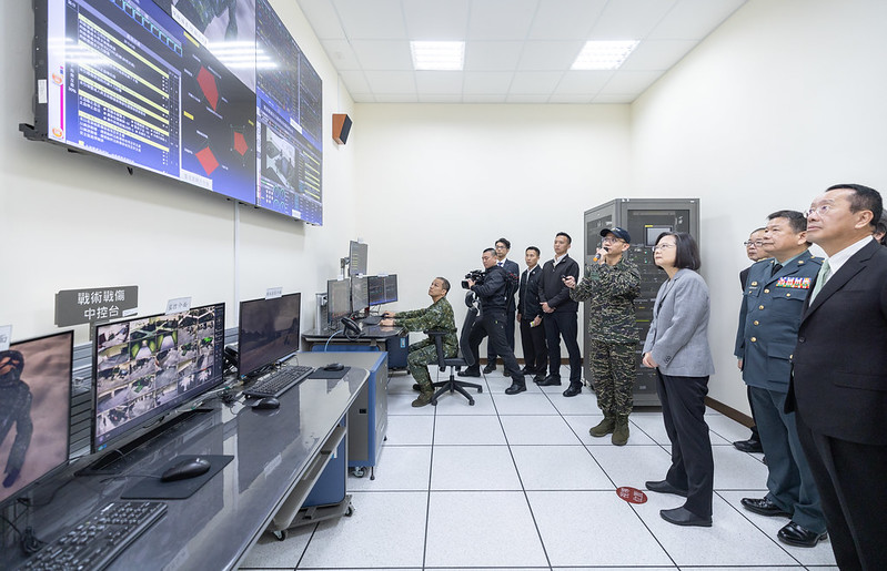隨後,總統與現場貴賓一同進行啟用儀式。接著在衛訓中心蔡忠勤主任導覽下,視導重大災情情境教室、戰術戰傷情境教室及載具救護訓練教室,聽取各項模擬訓練系統功能介紹,並觀看現場演練。