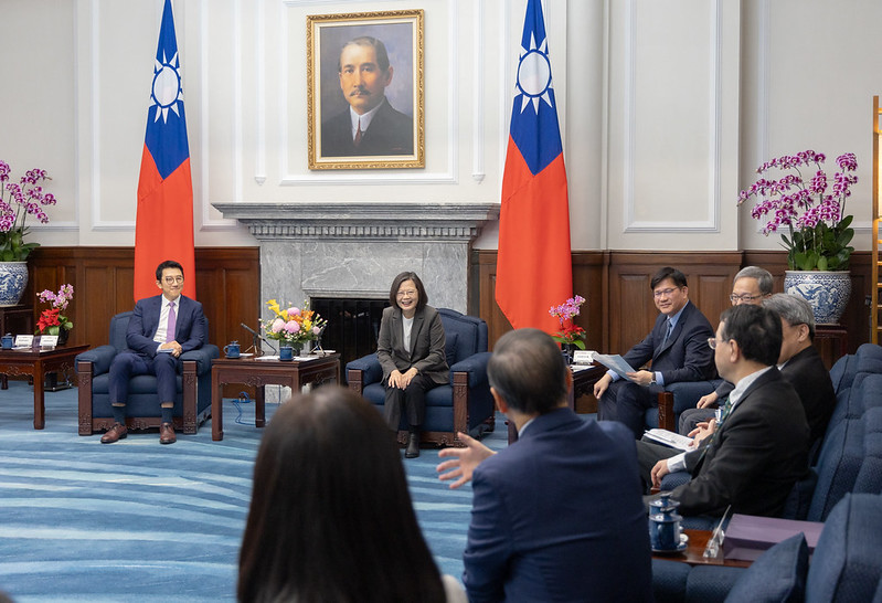 訪賓包括台灣生物產業發展協會理事長吳忠勳、榮譽理事長李鍾熙等,由衛福部長薛瑞元陪同,前來總統府晉見總統,總統府秘書長林佳龍也在座。