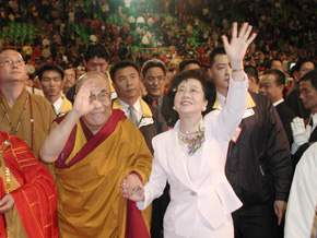 副總統秀蓮女士今天應邀參加在桃園巨蛋所舉行的「達賴喇嘛第二度蒞台弘法大會」,同時全程參與國內各宗教的聯合祈福大會。