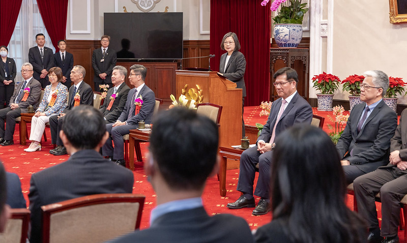 總統表示,在座先進都是驅動臺灣前進的重要動力。她要請大家持續提供政府寶貴的建議,讓臺灣品牌越擦越亮,持續在國際閃耀。政府也會繼續推動各項產業政策,提供最友善的創業和投資環境,做臺灣企業最大的後盾。