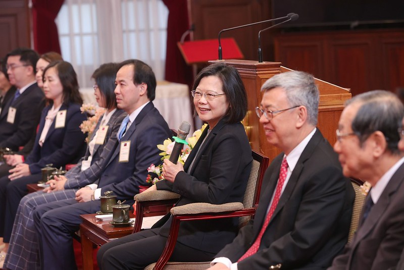 模範公務人員代表一行由行政院長陳建仁、考試院長黃榮村、秘書長劉建忻、銓敘部長周志宏及行政院人事行政總處人事長蘇俊榮等陪同,前來總統府晉見總統,總統府秘書長林佳龍也在座。