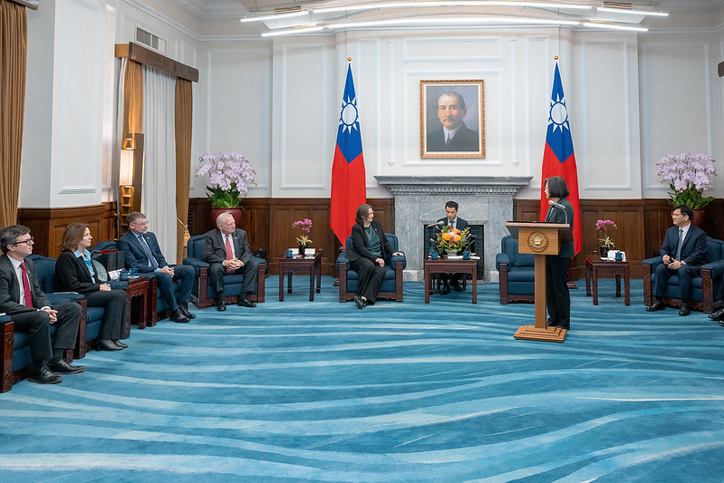 總統說,相信透過貴賓的來訪,臺灣和美國能夠尋求更多對話及合作機會,促進雙邊的經濟發展,共同為國際社會帶來更多貢獻。